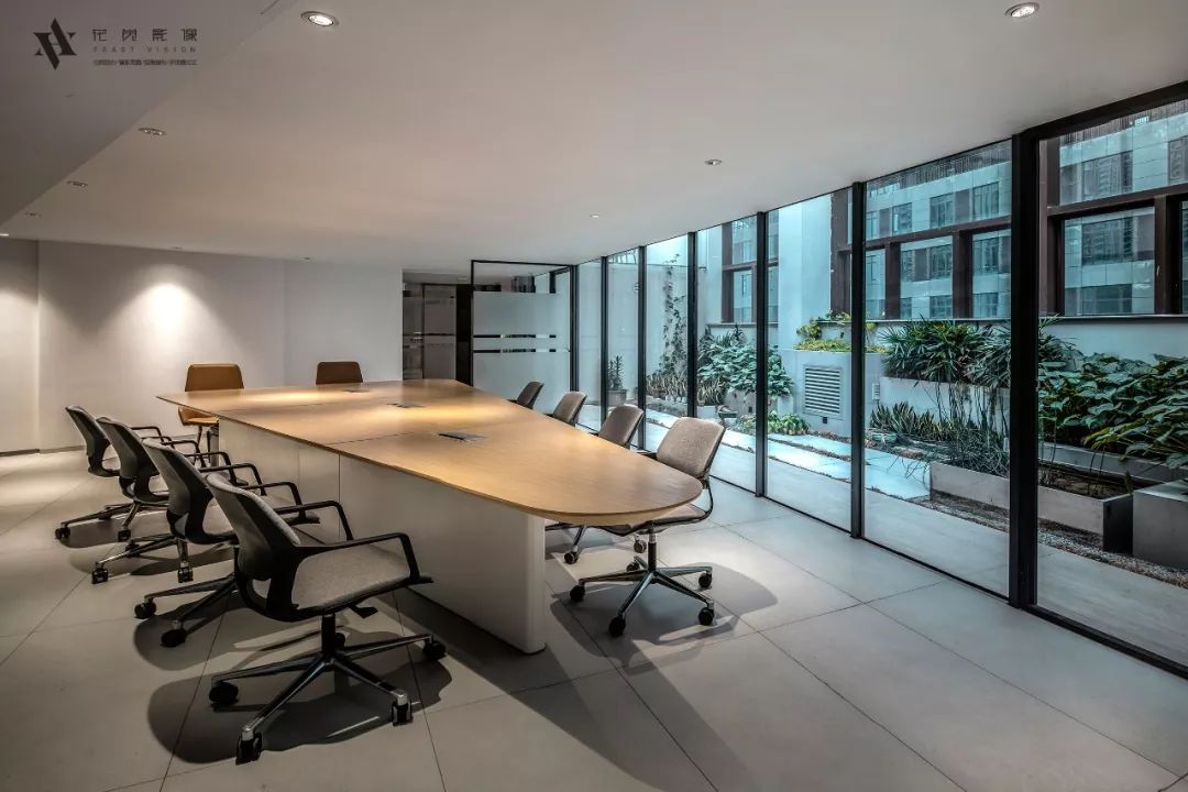 会议室融入了更多的细节,全落地的透明玻璃,结合工业感的空间设计,打造整体环境偏向舒适和灵活的会议模式,也能达到视觉和触觉的舒适享受,紧张的气氛得到有效缓解,以人为本。