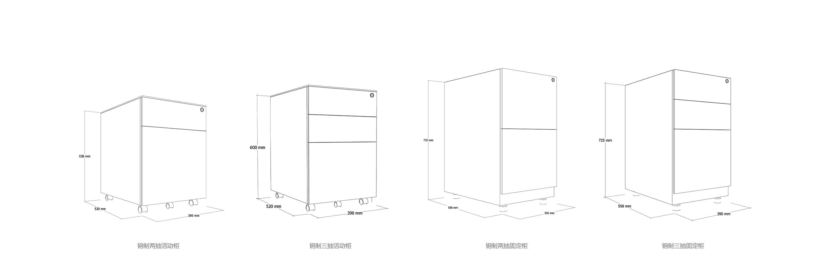 两抽\三抽固定柜:W390 D598 H725