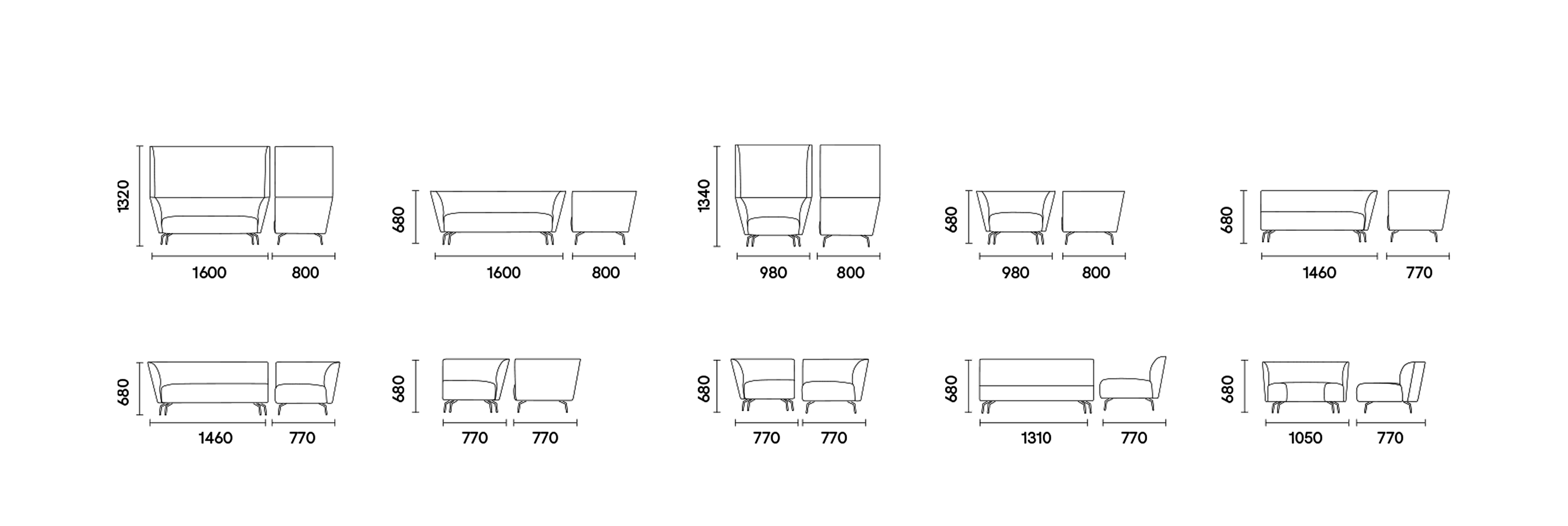 高背两人位:W1600 D780 H1340